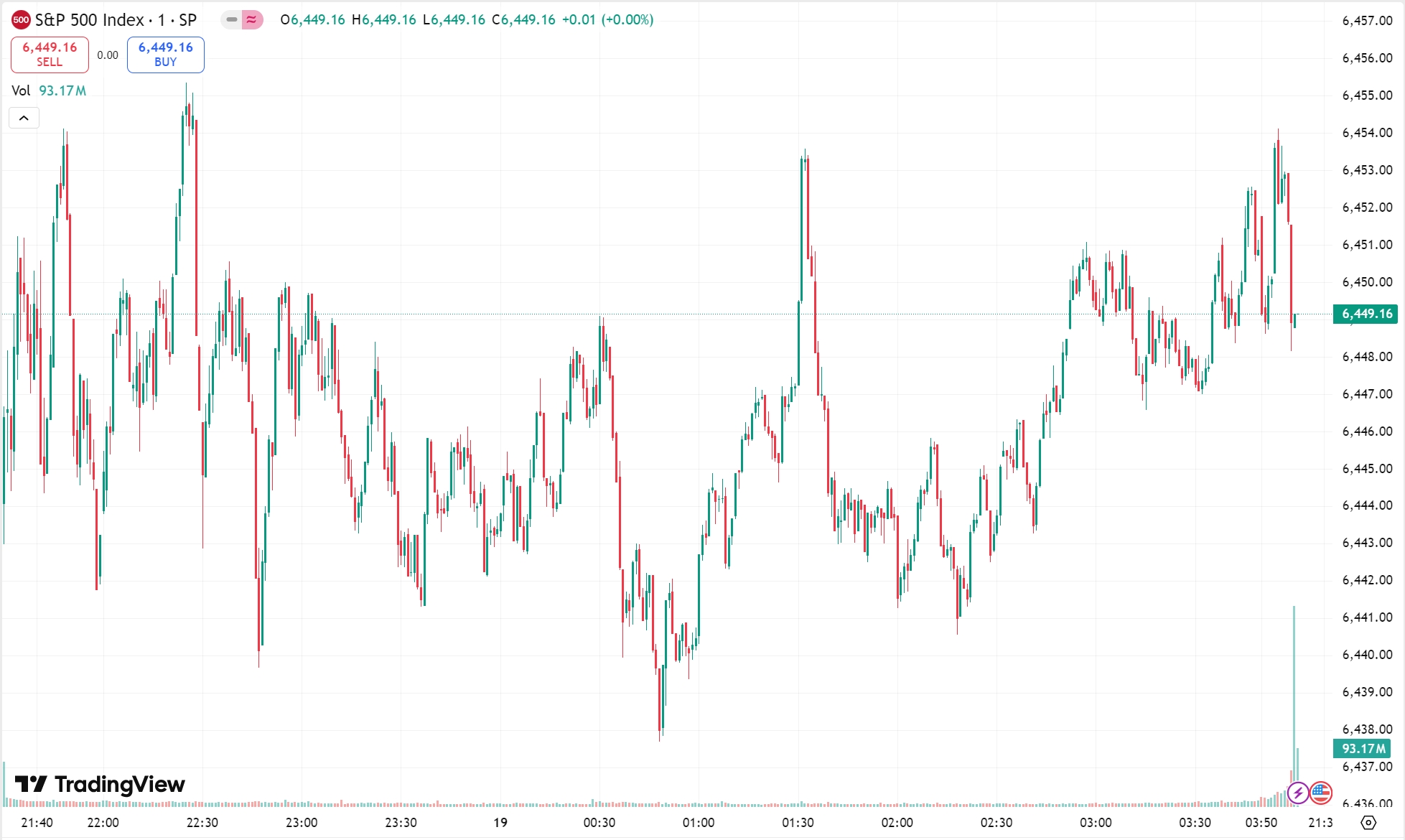 • 标普 500 指数跌 0.65 点,跌幅为 0.01%,报 6,449.15 点