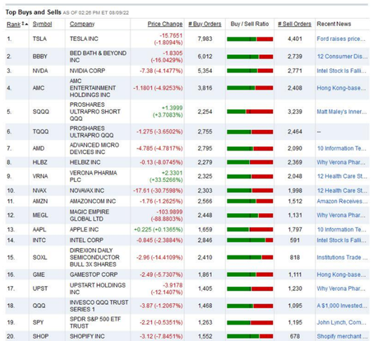 AMC 则是该平台上购买最多的 5 只股票之一,买入和卖出订单比例为1.6:1, NVDA 排名第三。其他散户热捧的股票包括 Helbiz, Inc(HLBZ)、诺瓦瓦克斯医药(NVAX)、智富融资(MEGL)等。