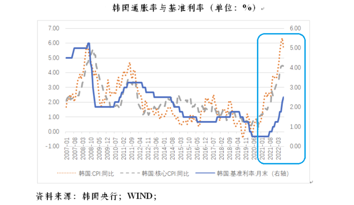 到今年 8 月份,韩国央行连续加息七次,累计达 200 个基点,基准利率为 2.50%。