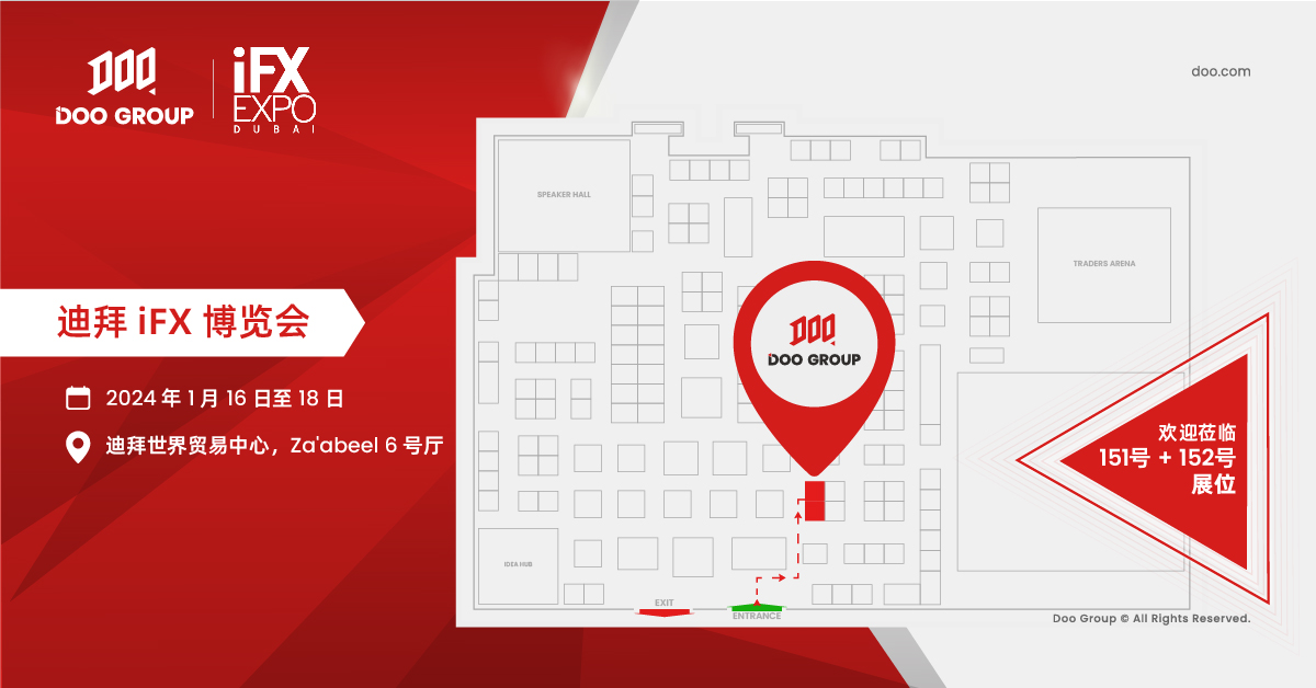 Doo Group 期待在迪拜 iFX 博览会 151 号和 152 号双展位与您相遇,同时,如您想与 Doo Group 参展团队会面深入交流,可发送邮件至 marketing@doogroup.com 联系我们,2024 不见不散。