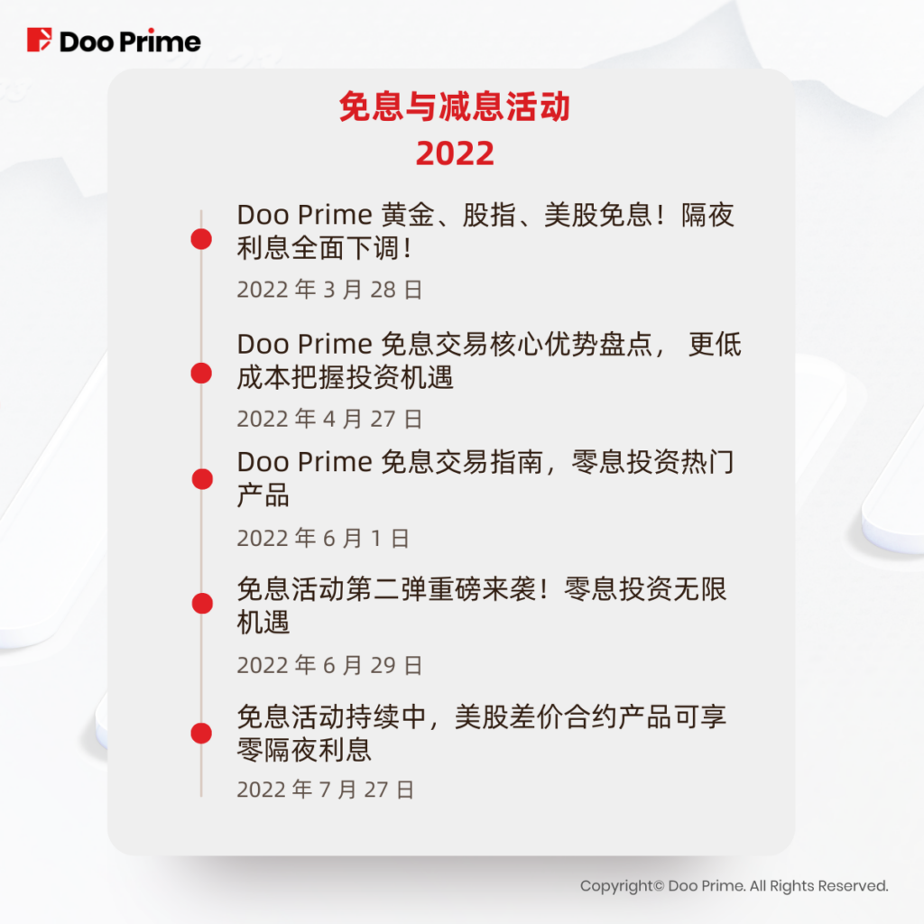 免息活动的首要目的,是帮助 Doo Prime 的客户以最低的交易成本与交易风险,达成最高的交易收益。Doo Prime 一直竭尽所能,在方方面面让客户受益。如欲了解更多有关免息活动的优惠福利,请点击这里阅读详情。