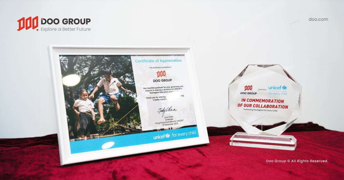 ในเดือนเมษายน ปี 2022 Doo Group ได้ร่วมเป็นพันธมิตรครั้งแรกกับ UNICEF HK โดยสนับสนุนโครงการริเริ่ม “Schools for Asia” เพื่อปรับปรุงสภาพแวดล้อมการเรียนรู้ที่ดีขึ้นสำหรับเด็กที่ต้องการและปกป้องสิทธิในการศึกษาของพวกเขา โครงการริเริ่มนี้ประสบความสำเร็จในการมอบการศึกษาที่มีคุณภาพให้กับเด็กจำนวนมาก รวมถึงทรัพยากรการเรียนรู้และได้รับผลลัพธ์ที่น่าทึ่งในการรับรองสิทธิการศึกษาของเด็ก