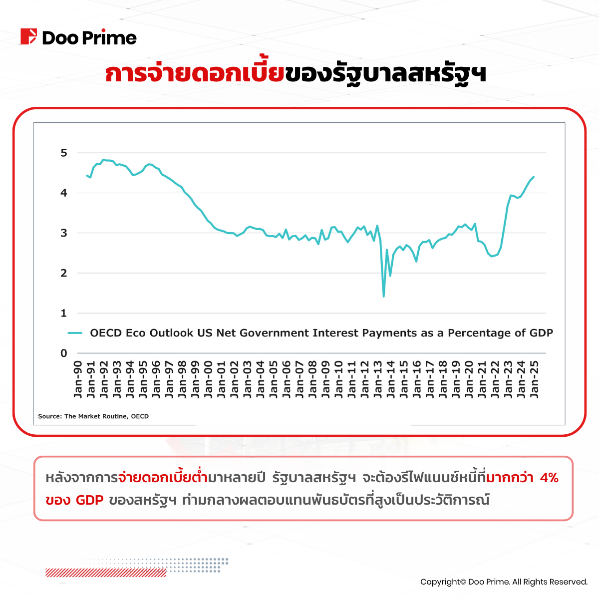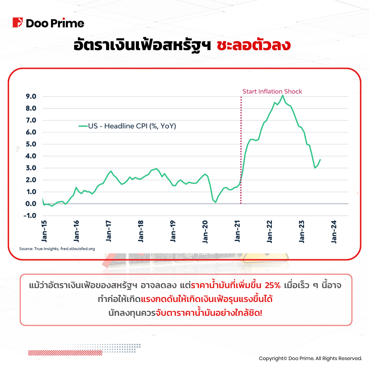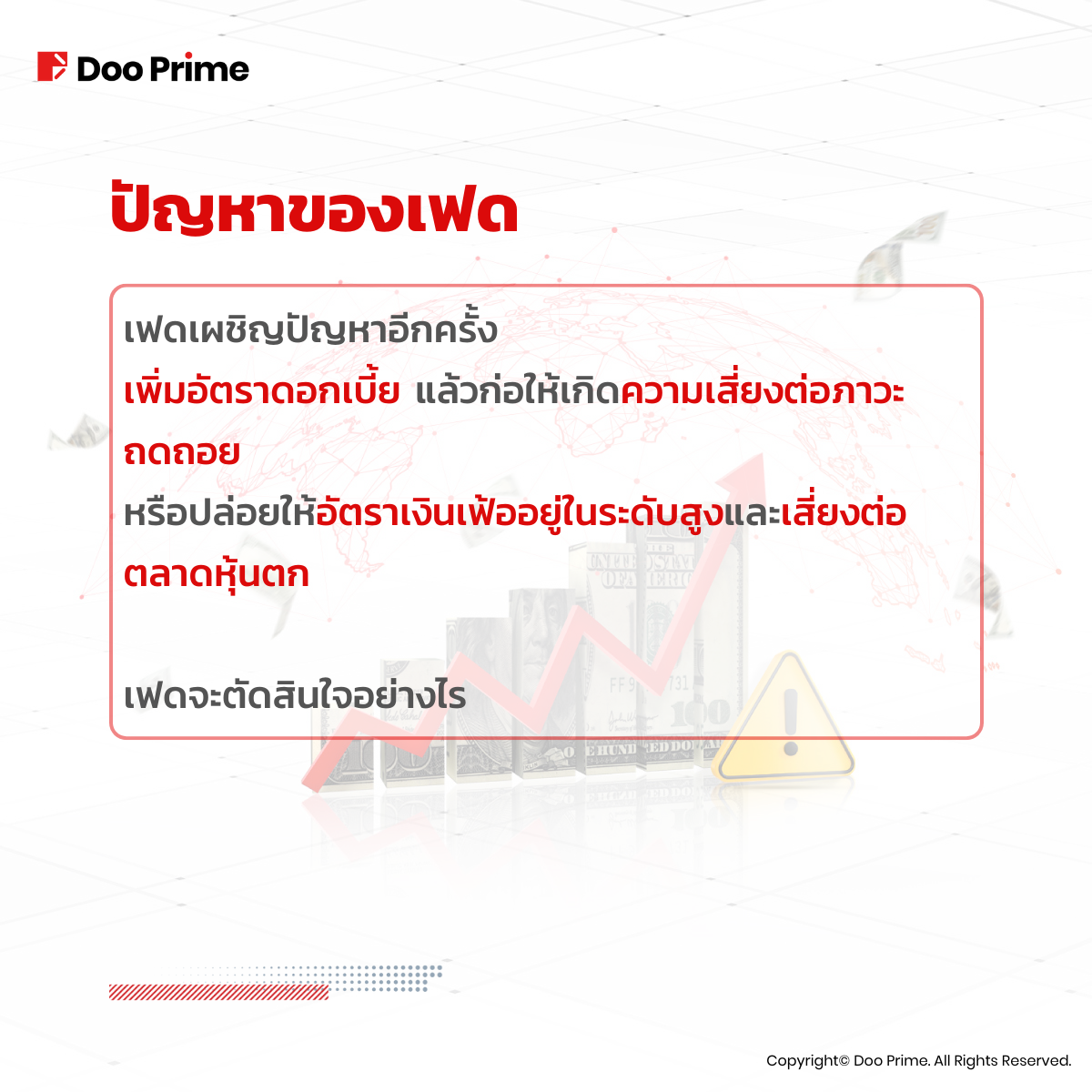 ข้อมูลนี้มีวัตถุประสงค์เพื่อให้ข้อมูลทั่วไปแก่สาธารณะเท่านั้น ข้อมูลไม่ควรถูกตีความเป็นคำปรึกษาทางด้านการลงทุน คำแนะนำ ข้อเสนอ หรือคำเชิญชวนเพื่อซื้อหรือขายเครื่องมือทางการเงินใด ๆ ข้อมูลที่นำเสนอในบทความนี้จัดทำขึ้นโดยโดยไม่มีการอ้างอิงหรือพิจารณาถึงจุดประสงค์การลงทุนหรือสถานะทางการเงินของผู้ใดผู้หนึ่งแต่อย่างใด การอ้างอิงถึงประสิทธิภาพของเครื่องมือทางการเงินในอดีต เครื่องมือทางการดัชนี หรือผลิตภัณฑ์การลงทุนไม่ใช่ตัวบ่งชี้ที่เชื่อถือได้สำหรับผลลัพธ์ในอนาคต Doo Prime ไม่รับรองและรับประกันข้อมูล และไม่รับผิดชอบต่อการสูญเสียหรือความเสียหายทั้งทางตรงและทางอ้อมอันเป็นผลมาจากความไม่ถูกต้องหรือความไม่สมบูรณ์ของข้อมูล Doo Prime ไม่รับผิดชอบต่อความสูญเสียหรือความเสียหายที่เป็นผลมาจากความเสี่ยงการซื้อขาย กำไร หรือขาดทุนทั้งทางตรงและทางอ้อมที่เกี่ยวข้องกับการลงทุนส่วนบุคคล
