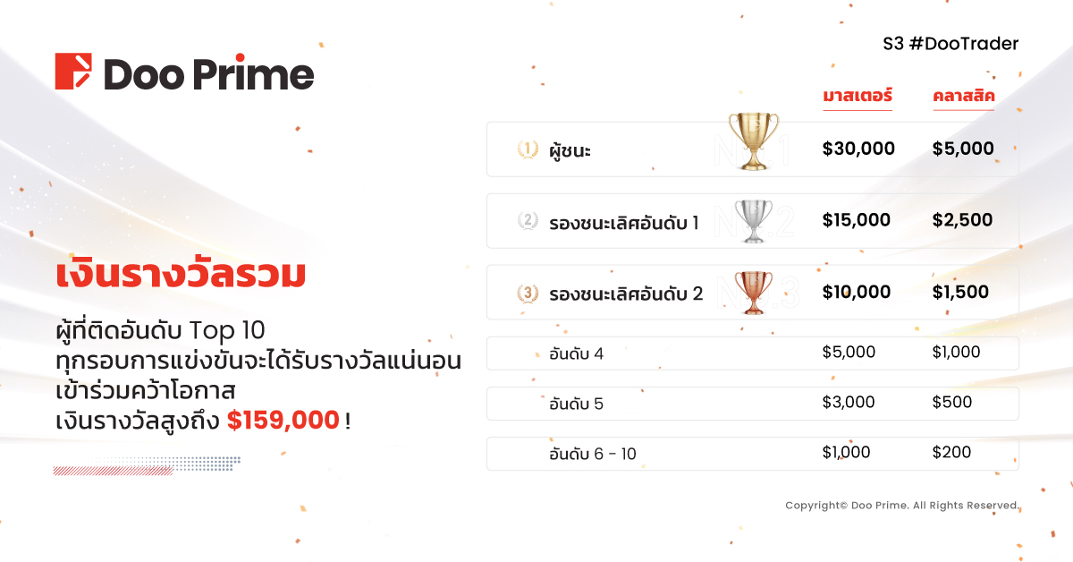 การกุศลของ #DooTrader ยังอยู่เหมือนเดิม ในปีนี้ Doo Prime จะบริจาคมากกว่าเดิม 10 เท่า โดยทุกล็อตที่ผู้เข้าแข่งขันทำการซื้อขาย เราจะบริจาค 0.1 USD จำนวนเงินเพื่อสนับสนุนการศึกษาให้แก่เด็กยากไร้ทั่วโลก
