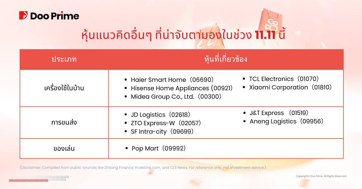 หุ้นแนวคิดอื่น ๆ ที่น่าจับตาในช่วงเทศกาล 11.11