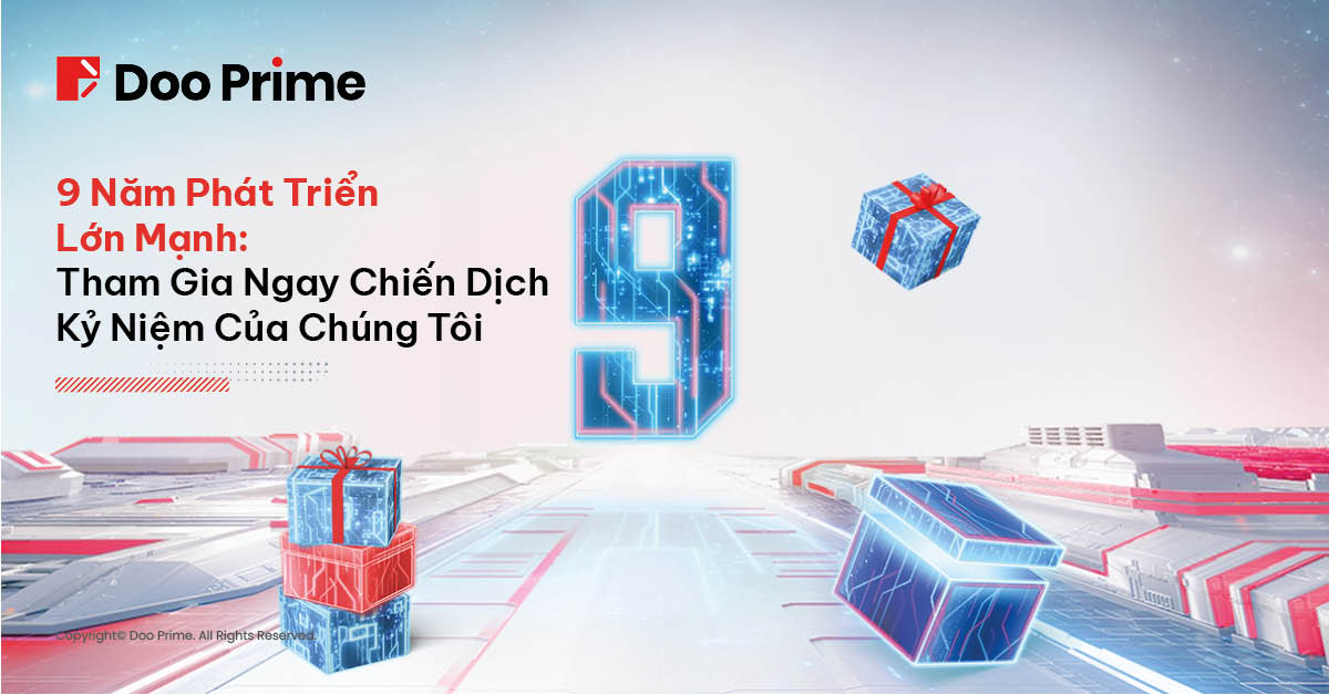 Bắt đầu từ ngày 18 tháng 12 năm 2023, tất cả khách hàng tại Doo Prime sẽ truy cập được Ưu Đãi Kỷ Niệm 9 Năm và sở hữu cơ hội trúng từ một trong 10 giải thưởng từ chương trình. Xin bật mí cho quý khách hàng, hệ thống giải thưởng của chúng tôi được tuyển chọn rất kĩ lưỡng, nhằm đảm bảo người dùng Doo Prime sẽ trúng được phần thưởng ưng ý!