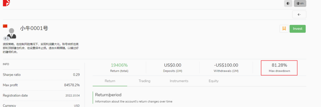 Tài khoản của người cung cấp tín hiệu giao dịch “Xiaoniu No. 0001” (小牛0001号) được tạo lập vào ngày 4 tháng 10 năm 2022. Kể từ khi thành lập, tỷ suất hoàn vốn của tài khoản trên đã sở hữu mức tăng trưởng đáng kể, với tổng tỷ suất hoàn vốn thuộc top đầu so với những người cung cấp tín hiệu khác. Trên thực tế, vào ngày 16 tháng 2 năm 2023, nguồn tín hiệu “Xiaoniu No. 0001” đã đạt mức tăng trưởng giao dịch đáng kể lên đến 33,235.2%, tăng hơn 330 lần.