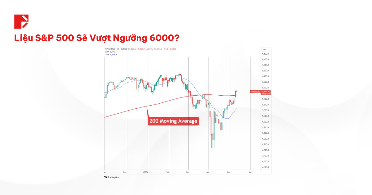 • Mức Phá Vỡ Đang Được Thử Nghiệm: Chỉ số S&P 500 đã vượt qua đường trung bình động trong 200 ngày. Nếu giữ trên vùng này, thì chặng tiếp theo có thể đẩy chỉ số này lên mức cao nhất mọi thời đại.